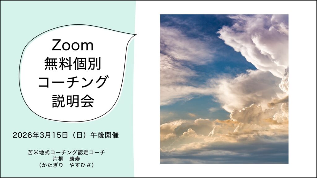 『苫米地式コーチング認定コーチによるZoom無料個別コーチング説明会のお知らせ[3/15(日)午後]』