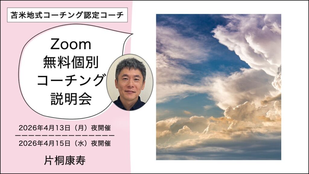 『苫米地式コーチング認定コーチによる「Zoom無料個別コーチング説明会」のお知らせ[4/13(月)夜・15日(水)夜]』